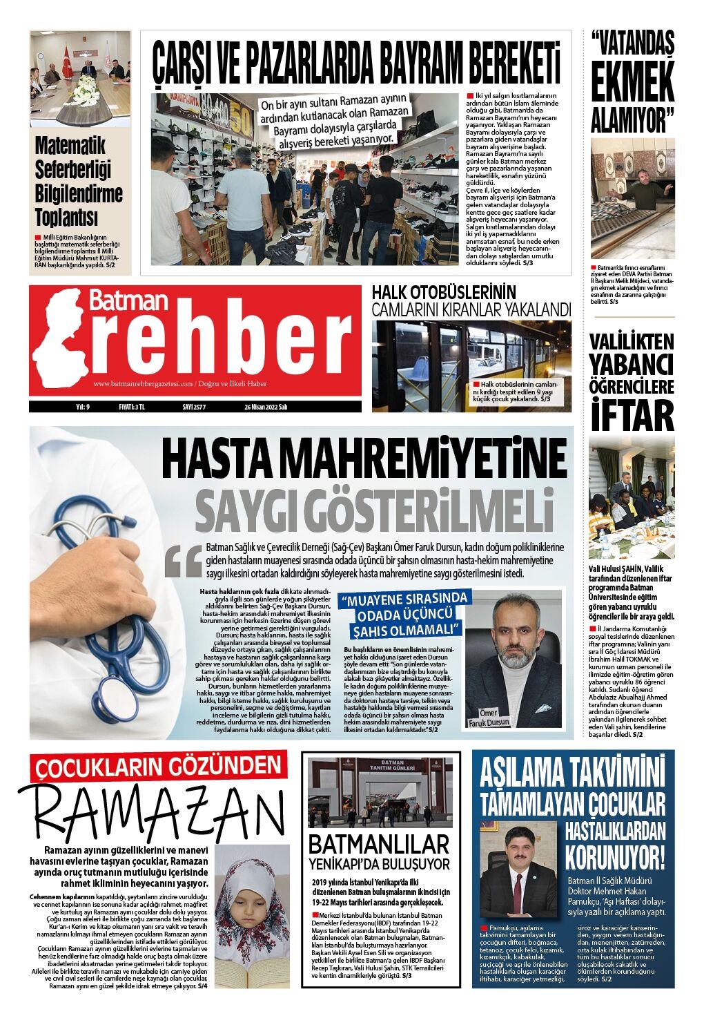 26.04.2022 Tarihli manşetimiz