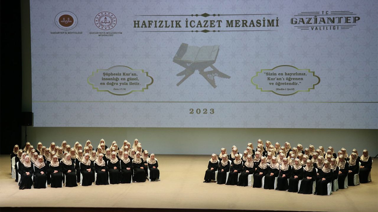 şekilde tamamlayarak mezun olan 104 hafize düzenlenen "Hafızlık İcazet