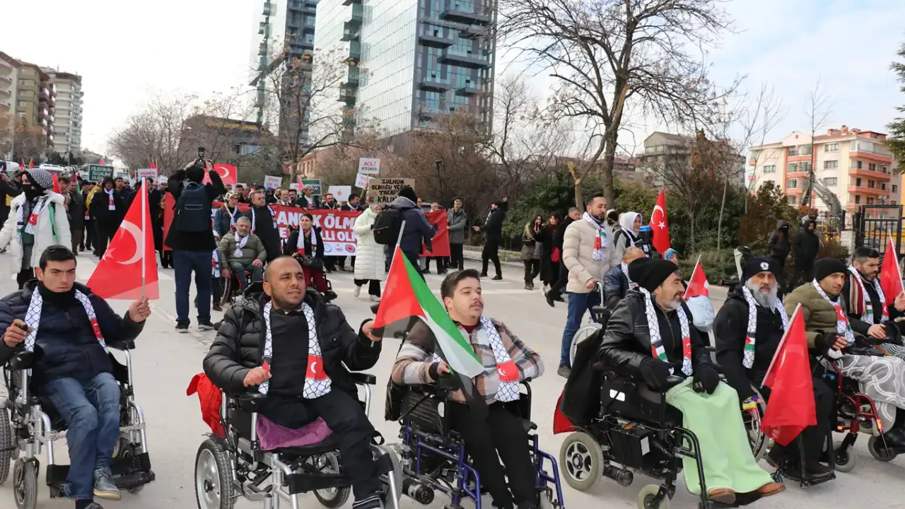 "Gazze İçin Acil Ateşkes" sloganıyla Ankara'nın Çankaya ilçesinde bulunan Tuğba Altınok Camisinde İnsanlık Ölmesin Platformu ile Ankara-Filistin Dayanışma Platformu öncülüğünde bir araya gelen Ankaralılar, Filistin'de yaşanan soykırıma ateşkes için ABD Büyükelçiliği önüne yürüdü.