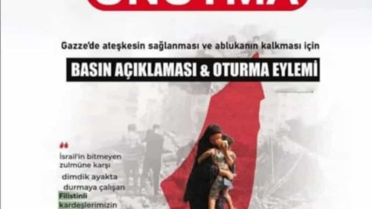 Batman’da bulunan İslami STK'lar, israil terör örgütünün (İTÖ) Gazze'de yaptığı soykırım ve vaşetine karşı mazlumların sesi olmak, işgalcilerin zulmünü duyurmak ve zülme karşı tepkilerini ortaya koymak adına yarın saat 16.30'da Gülistan Caddesi'nde basın açıklaması ve oturma eylemi gerçekleştirecek. MUSTAFA KAYNAK