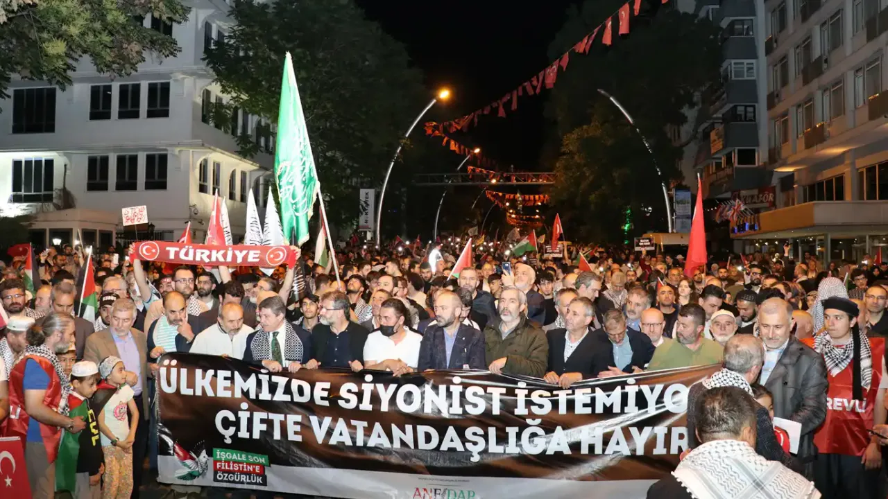 İşgalci terör çetesinin yaklaşık 8 aydır devam ettiği soykırım ve son olarak Refah'ta sivillerin yaşadığı çadırkentte yaptığı katliamı telin etmek için yürüyüş yapıldı. Zulmü lanetlemek, mazluma destek olmak için bir araya gelen Kudüs aşığı halk, sık sık tekbirler getirip sloganlar attı.