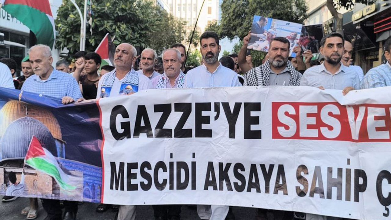 Mersin'de Peygamber Sevdalıları Derneği öncülüğünde düzenlenen programda, siyonist rejimin Gazze'ye yönelik saldırıları kınanarak, yürüşü ve basın açıklaması yapıldı.
