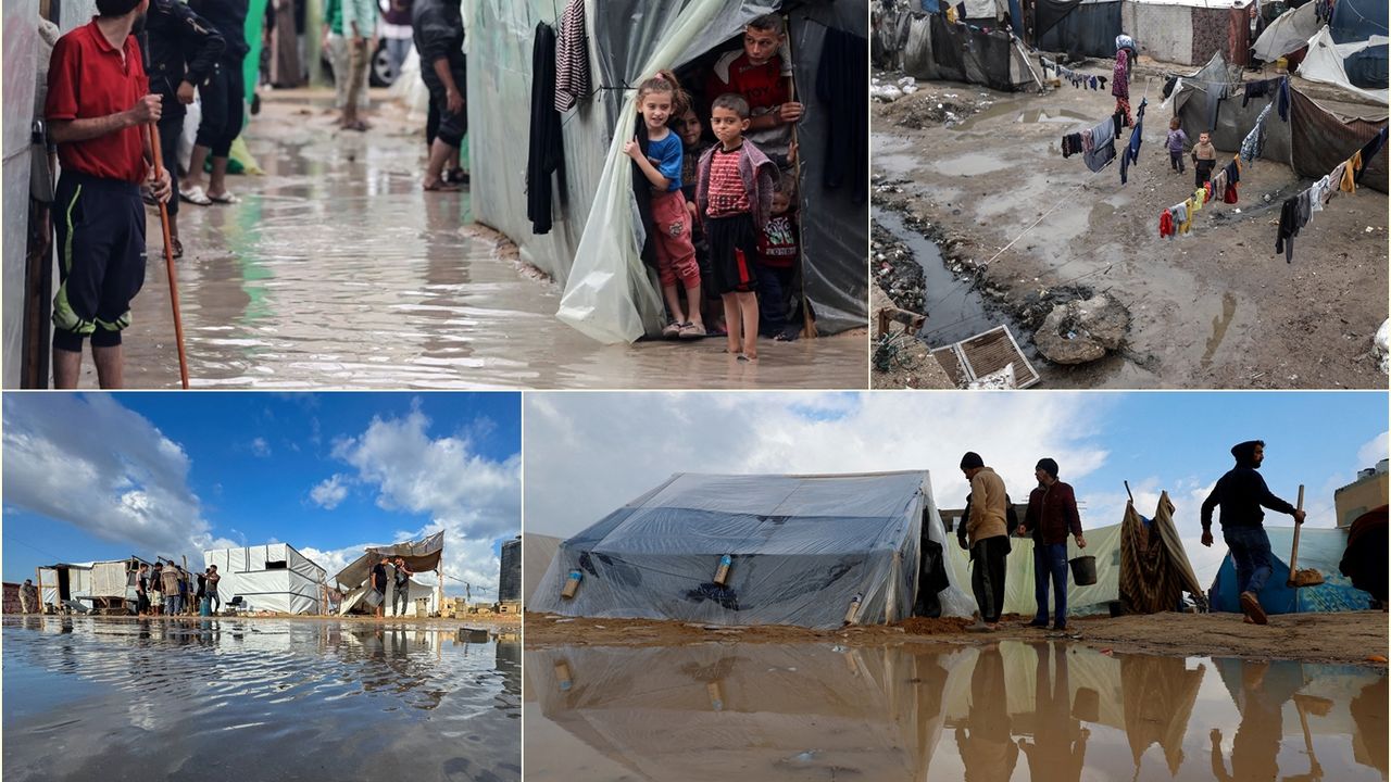 Gazze Şeridi'nin kuzeyindeki Cibaliye Mülteci Kampı’nda da sağanak yağış sebebiyle yerinden edilmiş Filistinlilerin kaldığı birçok çadırı su bastı.
