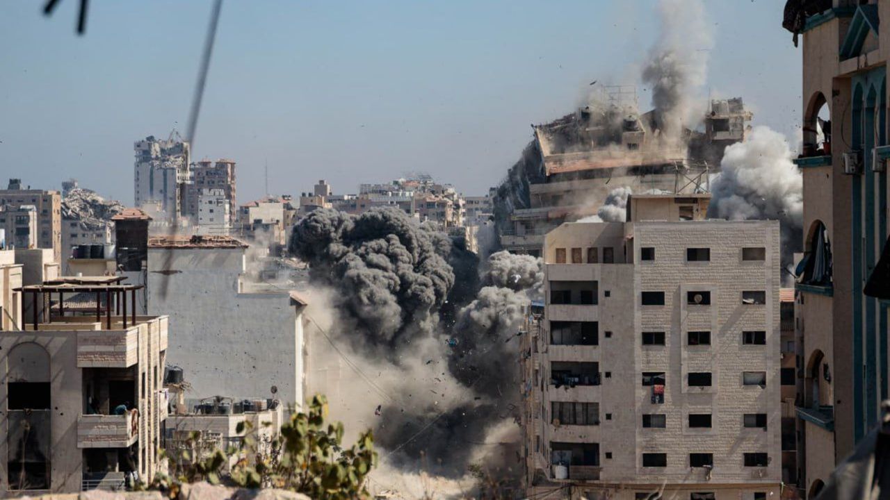 İşgal uçakları bu sabah Gazze Şehri'nin batısındaki El-Rimal Mahallesi'ndeki El-Kevser konut kulesini imha etti.