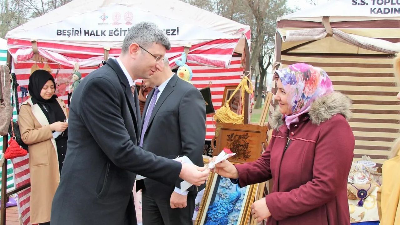 8 Mart Dünya Kadınlar Günü dolayısıyla Batman Valiliği koordinesinde Atatürk Parkı’nda gerçekleşen Batman Geleneksel El Sanatları Sergisinde Beşiri Halk Eğitim Merkezi de açtığı bir stantla katılım sağladı. Sergiyi ziyaret eden Beşiri Kaymakamı Mahmut ŞENER, Beşiri standında durup katılımcı bayanlarla sohbet etti. ŞENER, kadın kursiyerlerin yapmış olduğu el emeği ürünleri inceleyerek, kursiyer ve usta öğretici kadınlara karanfil verdi. ŞEVKİ ASLAN