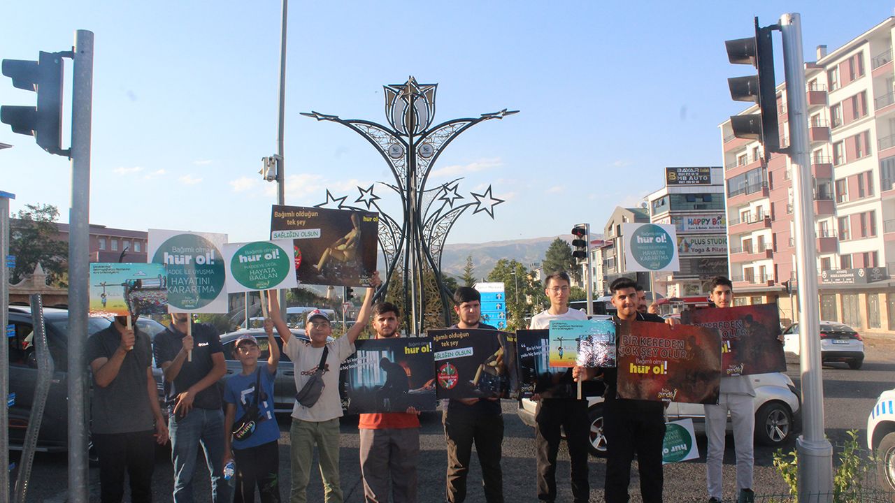 HÜDA PAR Bingöl İl Gençlik kolları, Bingöl’de madde bağımlılığına dikkat çekmek, gençlerin bu bataklığa düşmesini engellemek, aileleri bilinçlendirmek için, afatlar kavşağında bilinçlendirilme eylemi yaptı.