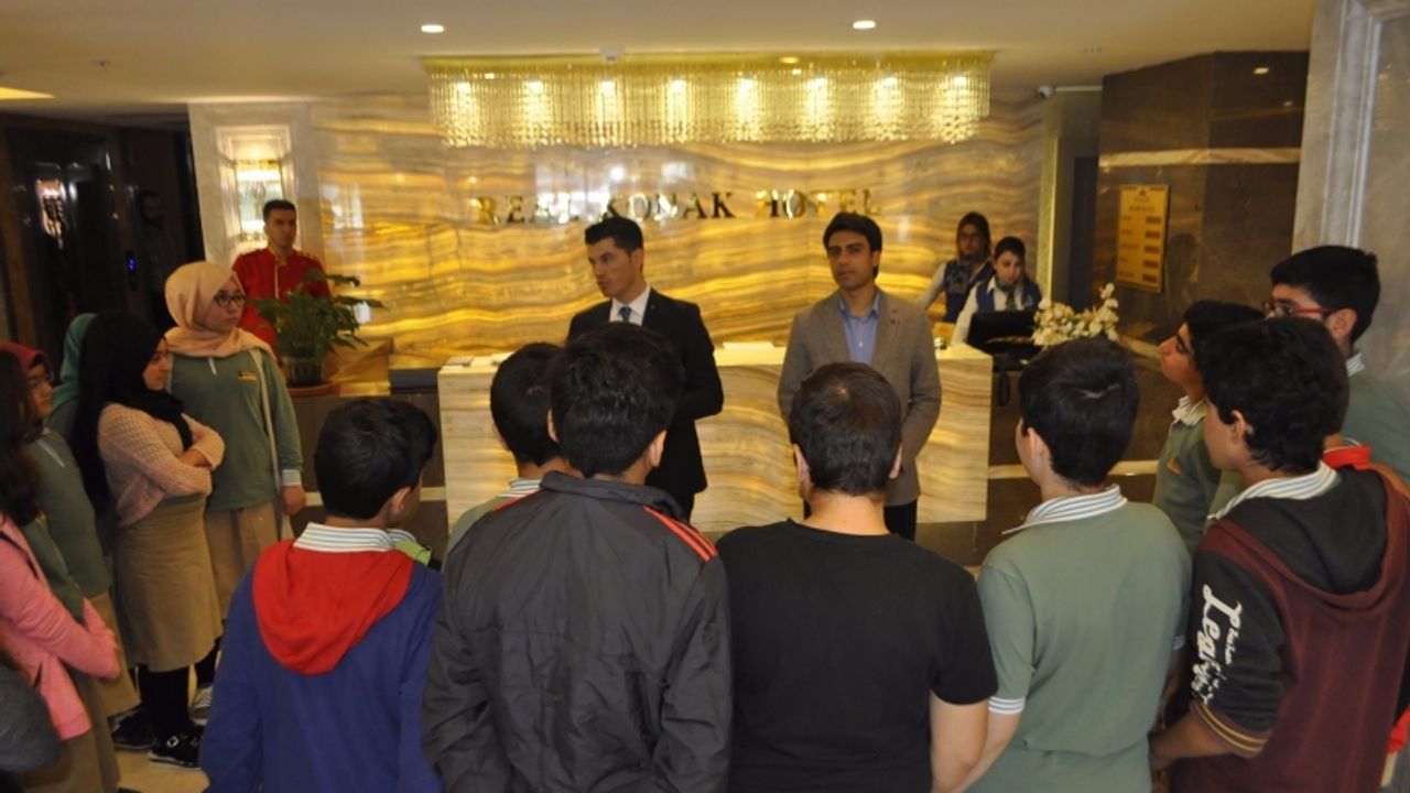 Kolejin 7. sınıf öğrencileri için Real Konak Hotel'de düzenlenen kahvaltılı toplantıda Otel Müdürü Hüseyin Aslan, öğrencilere turizm ve otelcilik hakkında bilgi verdi. Ziyaretten duyduğu memnuniyeti dile getiren Aslan, öğrencilerin sorularını yanıtladı. Otel Müdürü Aslan'a teşekkür eden Eğitimci Mecit Yıldırım 'Öğrencilerin meslek seçiminde dikkatli olmaları için böyle bir etkinlik düzenledik. Real Konak Hotel Müdürü Hüseyin Aslan'ın öğrencilere turizm ve otelcilik hakkında detaylı bilgi vermesi öğrenciler için mutlaka faydalı olmuştur. ' dedi. Program, öğrencilere kitap hediye edilmesinin ardından sona erdi. Recep Fırat