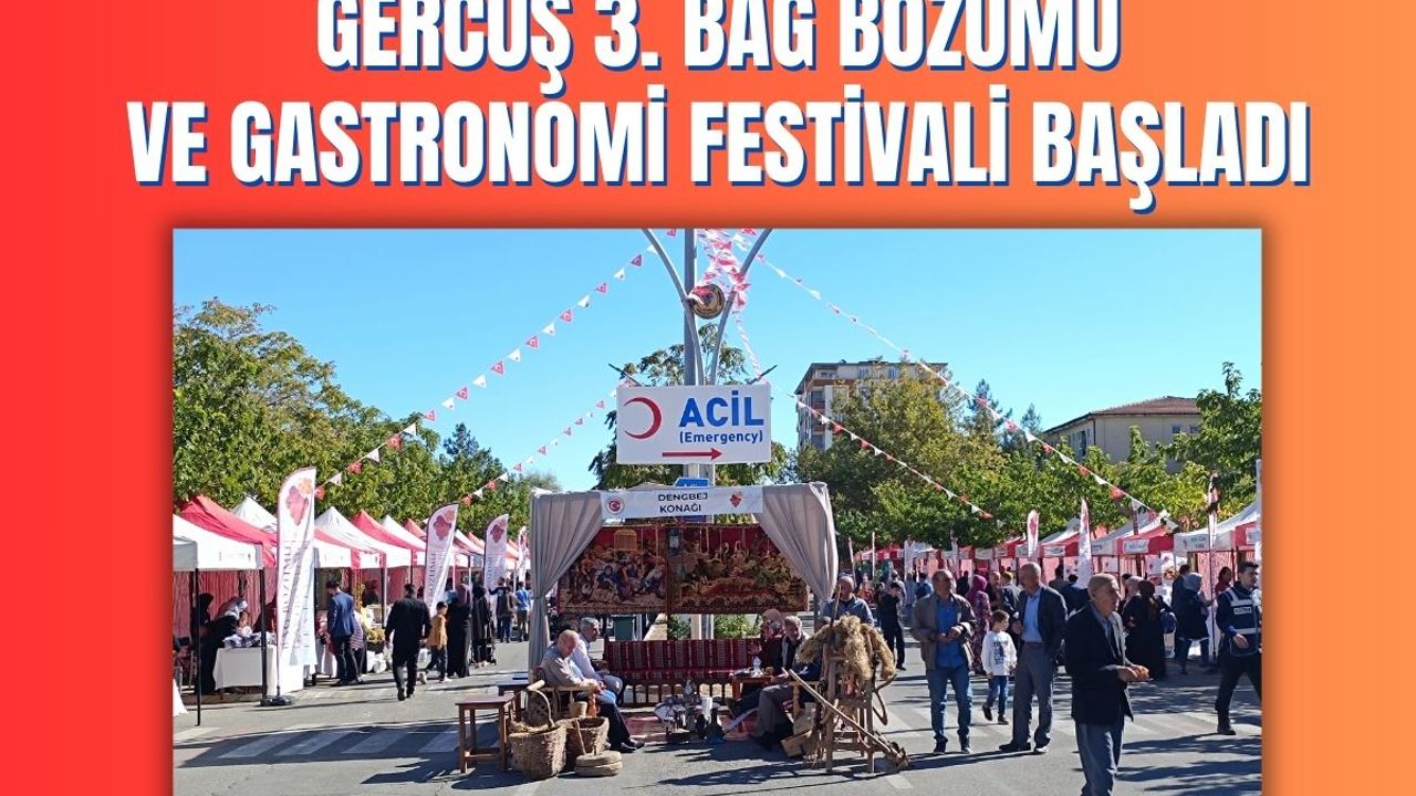 Batman'ın Gercüş ilçesinde düzenlenen 3. Bağ Bozumu ve Gastronomi Festivali başladı Festivalde ilçeye özgü yöresel ürünlerin bulunduğu stantlarda pestil, cevizli sucuk, pekmez, üzüm şerbeti, pirinç pilavı, mercimek çorbası, mazrone üzümü gibi birbirinden lezzetli ürünler sergilendi.