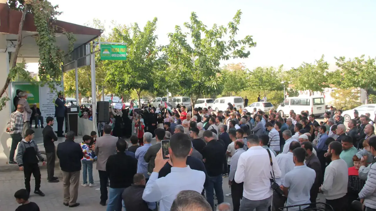 mesajlar verildi. HÜDA PAR Gercüş ilçe Başkanlığı önünde bir araya gelen