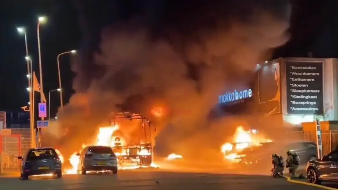 Çok sayıda polis aracını yakan protestocular, bazı otobüsleri de kundakladı.