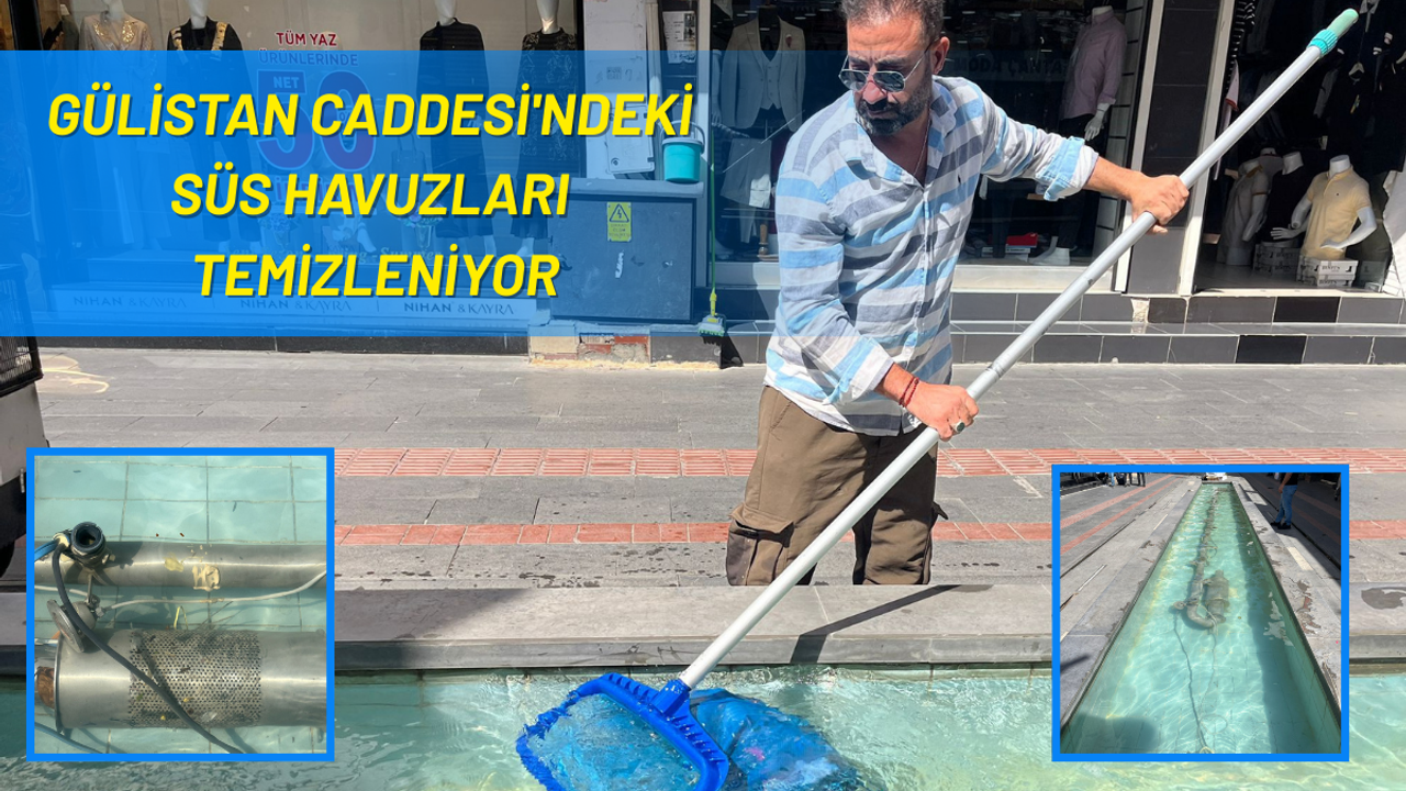 Belediye ekipleri, yürüttükleri temizlik çalışmaları kapsamında, vatandaşların dinlenmek ve vakit geçirmek için kullandığı alanları temiz tutmak amacıyla süs havuzlarına el attı.
