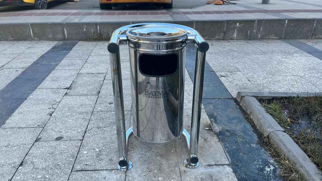 Paslanmaz çelikten yapılan çöp kutuları, sade tasarımı ve dayanıklılığıyla dikkat çekiyor. Belediye, bu çalışma ile caddede hem kullanım kolaylığı sağlamak hem de düzenli bir görüntü oluşturmak istiyor.
