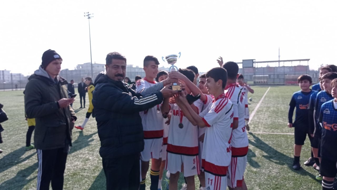 ardından şampiyon olan Gültepe Ortaokulunun kupa ve madalyalarını Spor Şube