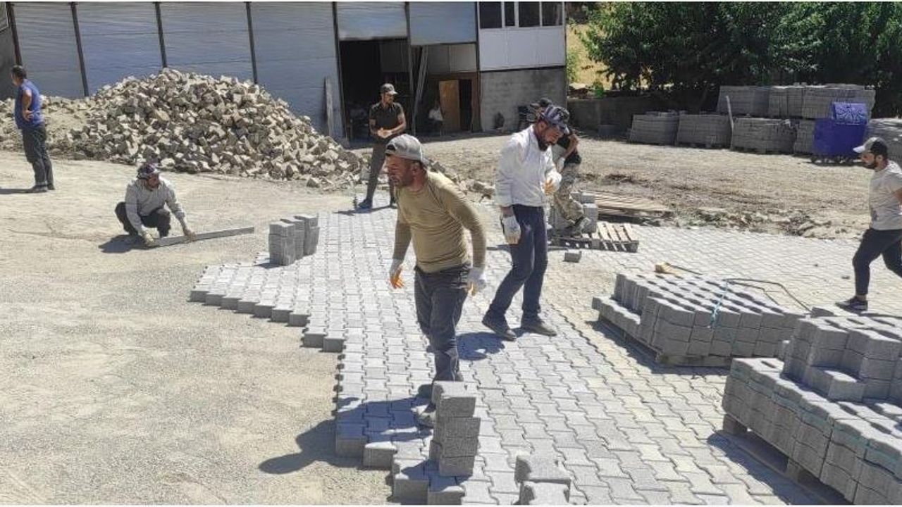 sıcaklara aldırış etmeden parke taşı döşüyorlar. Güneşin altında çalışmanın çok