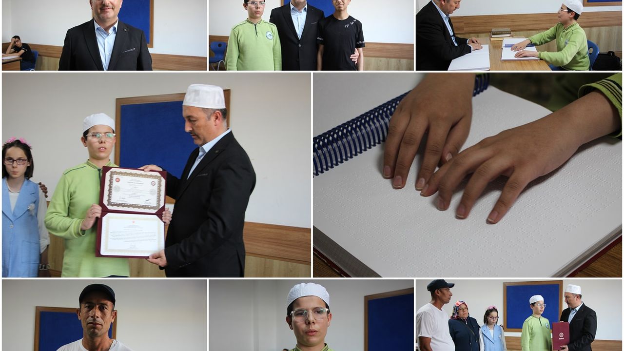 Kur'an-ı Kerim sevgisinin kendisini hafız yaptığına değinen görme engelli Yusuf Kukur, "Hafızlık yapmayı çok seviyordum ve hafız olmayı merak ediyordum. Dördüncü sınıfta Elif-ba okumaya başladım. Ankara'da hocam vardı, Onun rehberliğiyle hafızlığa başladım. Hafızlığımı bitirdim, çok şükür. Tekrarlarımı yapmaya başladım. Beş tekrarla sınava girdim. 27 Ağustos'ta sınava girdim ve başarılı oldum. Açıkçası hafızlığı çok merak ediyordum. Kur'an-ı Kerim'e sevgimiz var, okuyoruz. Çok şükür okuma imkanımız var. Görme engellilere yönelik İmam Hatip Ortaokulu'na gidiyorum.. Orada Kur'an-ı Kerim'e de ve diğer derslere de önem gösteriyorlar. Orada Kur'an hocamız vardı. Bizi çağırır, derslerimizi alırdı. Böyle derse giderdik." ifadelerini kullandı.