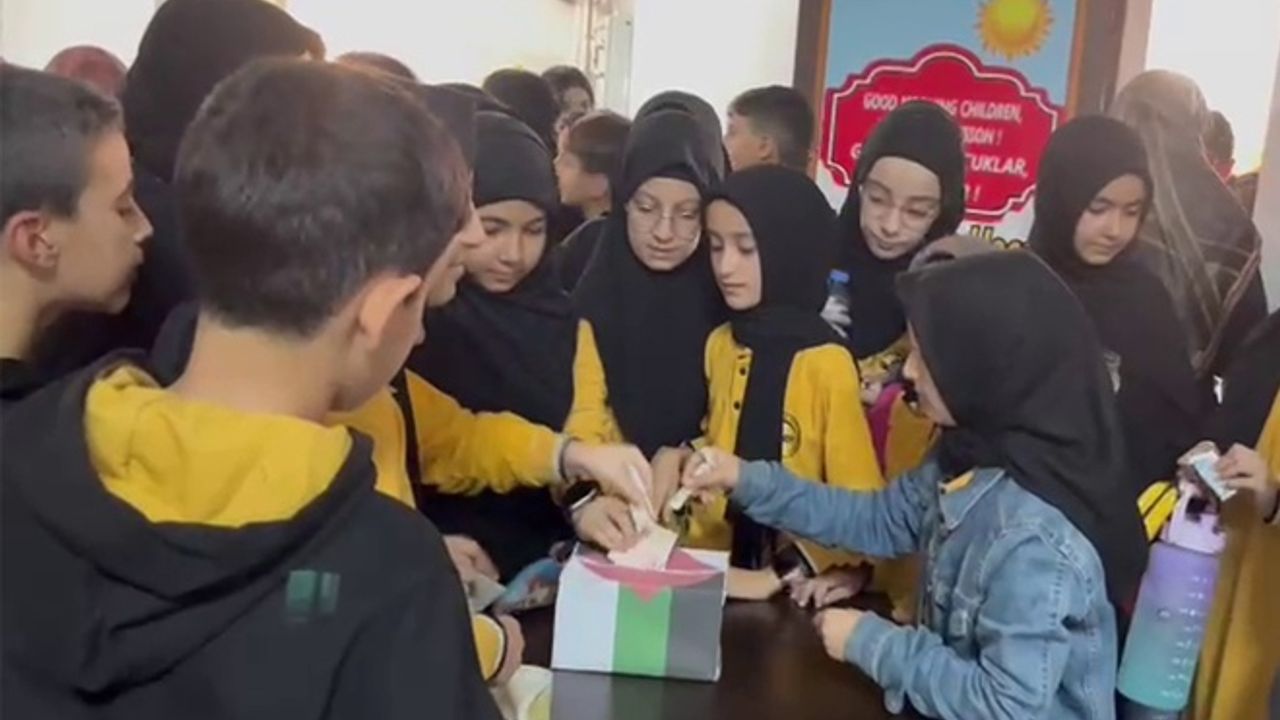 Öğrenciler, harçlıklarını ve kumbaraların da biriktirdikleri paraları kumbaraya atmak için sıraya girdiler. Toplanan paralar, Türkiye Diyanet Vakfı aracılığıyla Filistin'e ulaştırılmak üzere öğrenci temsilcileri tarafından Yeşilyurt İlçe Müftüsü Dr. Hüseyin Bayrak’a teslim edildi.