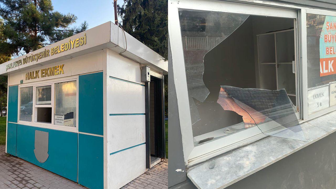 Şanlıurfa’nın merkezinde kurulan halk ekmek büfesine kimliği belirsiz kişi ya da kişilerce camları kırılarak zarar verildi.