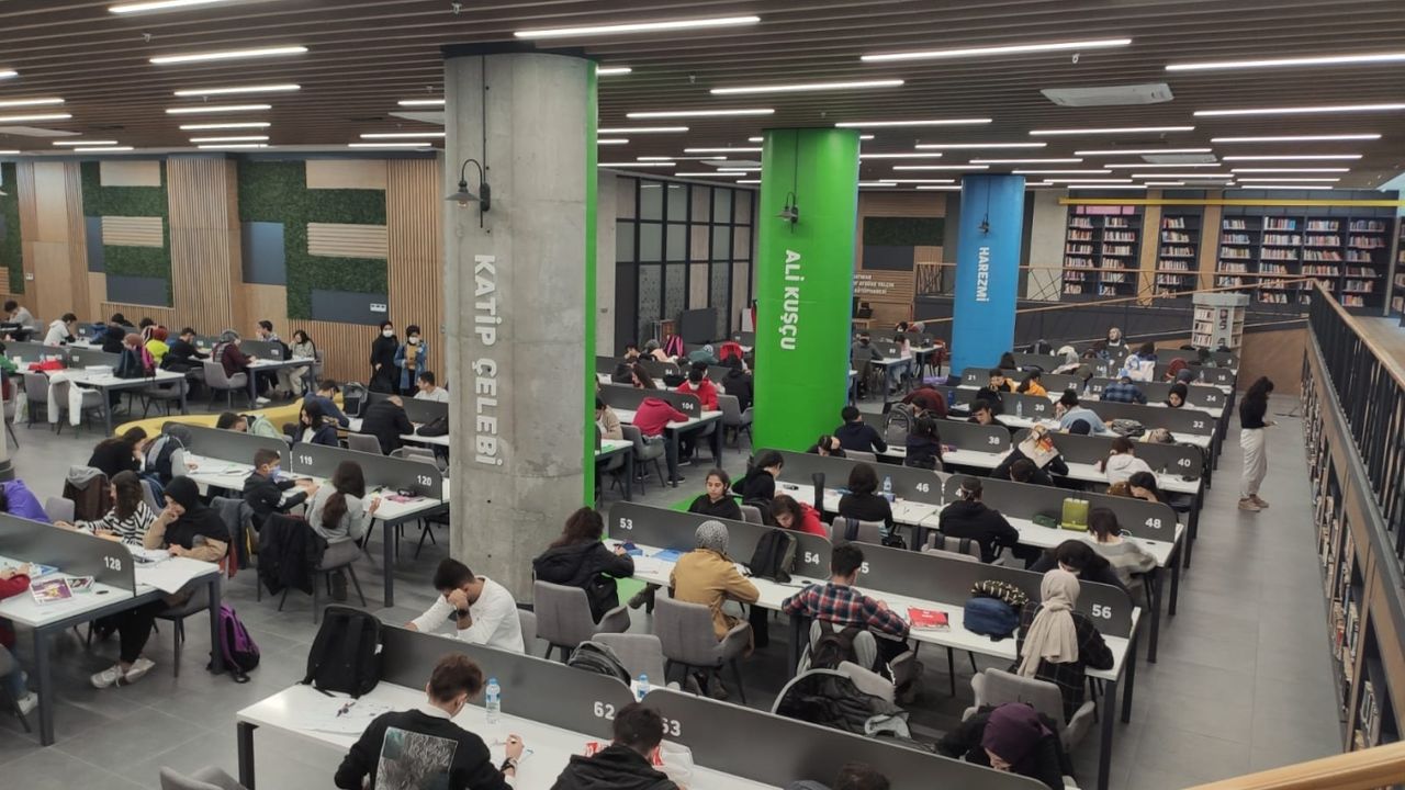 Kütüphanesi ramazan ayında da dolup taşıyor. Her gün binlerce kişi kütüphaneden