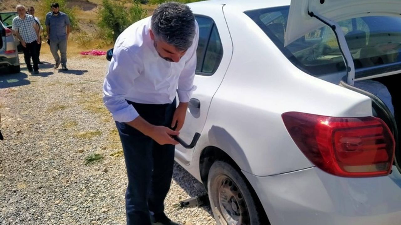 Dinç, aracın tekerleğini değiştirerek gerçek vekilin nasıl