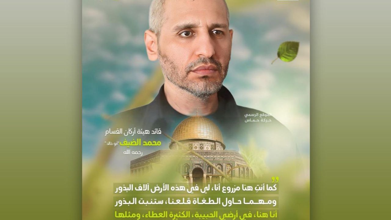 Muhammed ed-Daif’in şehadeti dolayısıyla HAMAS tarafından yayımlanan afişte şu ifadeler yer aldı;