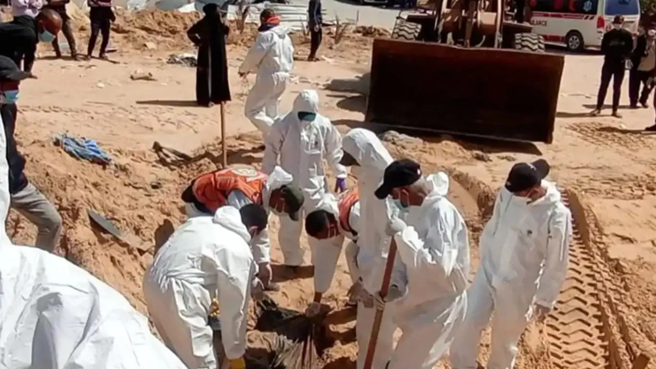 Gazze Şeridi'nin güney kesiminde yer alan Han Yunus şehrindeki Nasır Hastanesinin alanında bulunan 3 toplu mezardan392 ceset çıkarıldı.