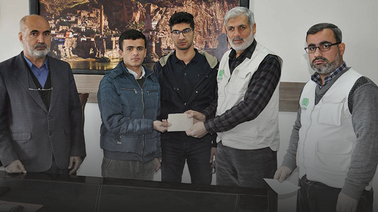 Öğrencilerin Afganistan halkı için topladığı paraları teslim alan Batman