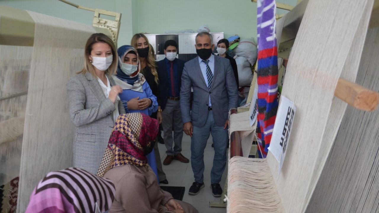İlçe Halk Eğitim Merkezi bünyesinde açılan; kilim, dikiş saç bakımı, resim kursu ve el sanatları kurslarını ziyaret eden Bayan Şahin, kursiyerlerle yakından ilgilenerek bir süre sohbet etti.