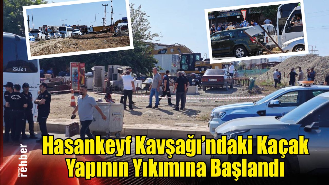 Polis ve zabıta ekiplerinin yoğun güvenlik önlemleri altında gerçekleştirdiği yıkım nedeniyle Hasankeyf Kavşağı'nda trafik akışında aksaklıklar yaşandı.