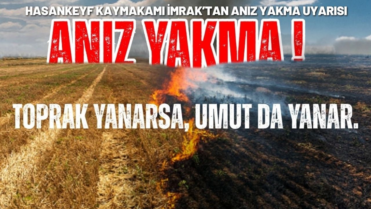 Hasankeyf Kaymakamı, anız yakma yasağına uymayanlar hakkında 2872 sayılı Çevre Kanunu gereği her dekar için 556,71 TL idari para cezası uygulandığını da hatırlattı. Vatandaşlardan duyarlılık beklediklerini belirterek, çevreye ve toprağa sahip çıkma çağrısında bulundu.