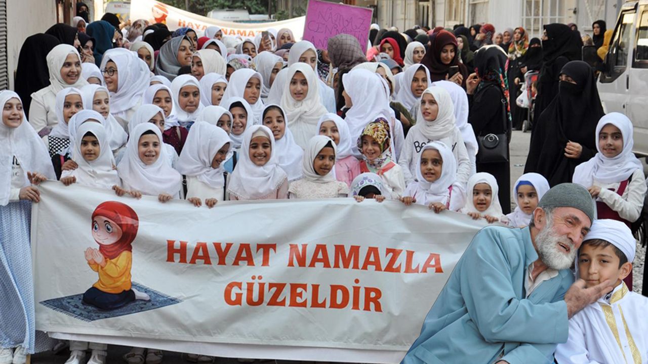 Şehrin onlarca farklı noktasında 15 günlük eğitimlerini başarıyla tamamlayan ve ilk kez namazla tanışan çocuklar, aileleri ve hocalarıyla birlikte şehrin farklı bölgelerinde toplanarak bir yürüyüş gerçekleştirdi.