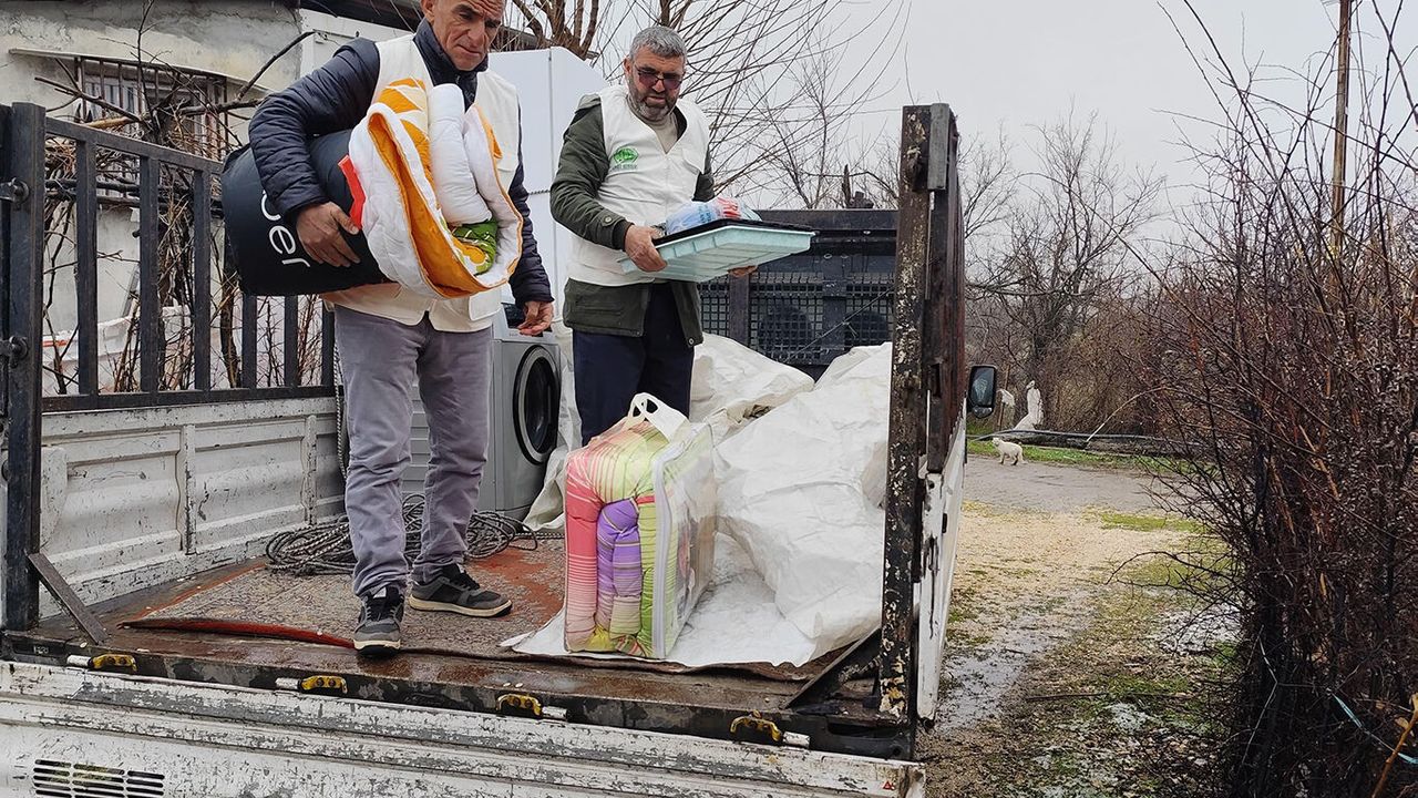 Yardım kapsamında aileye buzdolabı, çamaşır makinesi, halı, battaniye, yorgan, mutfak eşyaları ve gıda kolisi ulaştırıldı.