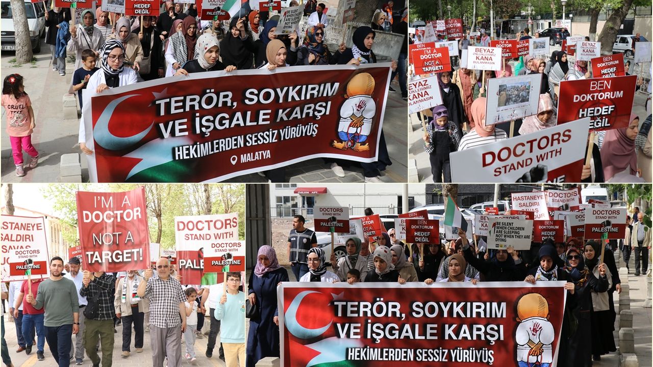 Malatya'da hekimler ve sağlık çalışanları tarafından, "Terör, Soykırım ve İşgale Karşı Hekimlerden Sessiz Yürüyüş!" sloganıyla her hafta düzenlenen yürüyüşün 23'üncüsü düzenlendi.