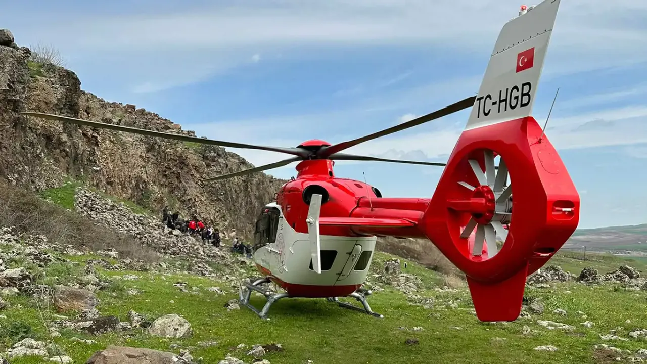 Diyarbakır'da kayalıklardan düşen 56 yaşındaki Mahmut Ataş, mahsur kaldığı yerden helikopter ambulans ile kurtarıldı.