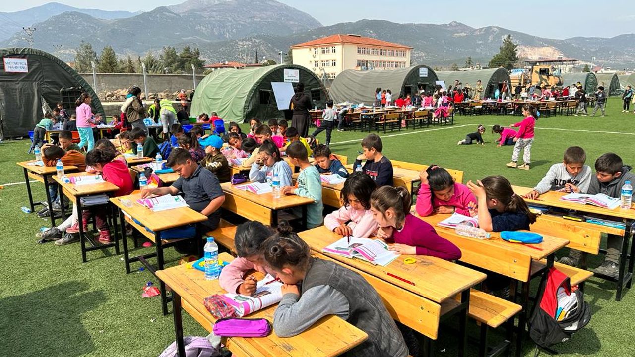 tarafından kurulan eğitim çadırlarında görev yapan öğretmenler depremden