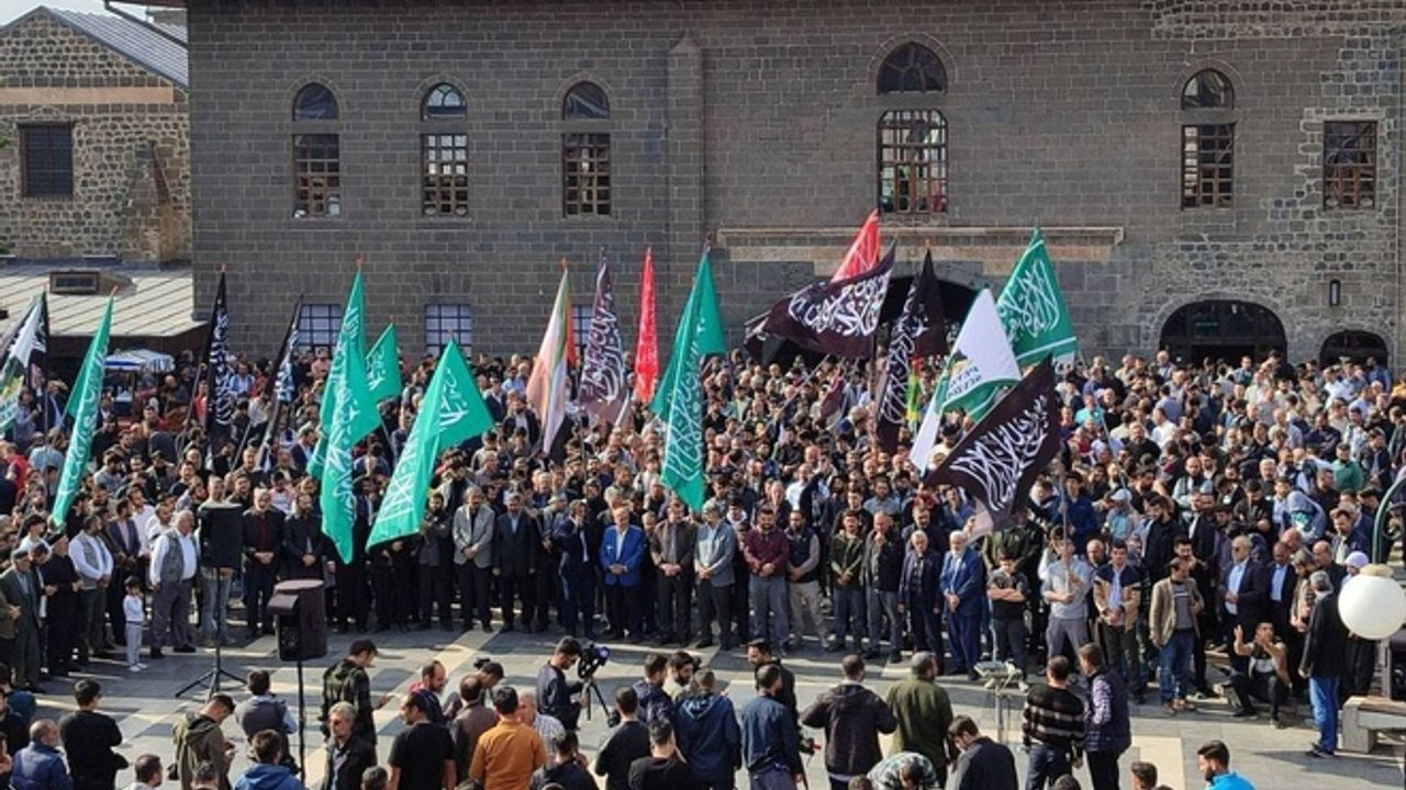 HAMAS'ın askeri kanadı İzzeddin El-Kassam Tugayları'nın siyonist işgalcilere karşı başlattığı "Aksa Tufanı" operasyonuna destek amacıyla, Peygamber Sevdalıları Vakfı tarafından Diyarbakır'da kitlesel basın açıklaması düzenlendi.