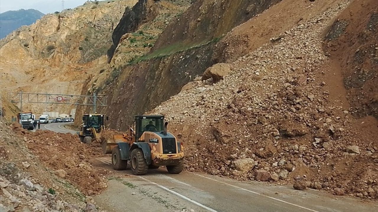 Heyelan nedeniyle yaklaşık 3 saat ulaşıma kapanan yolda, araç kuyruğu oluştu.