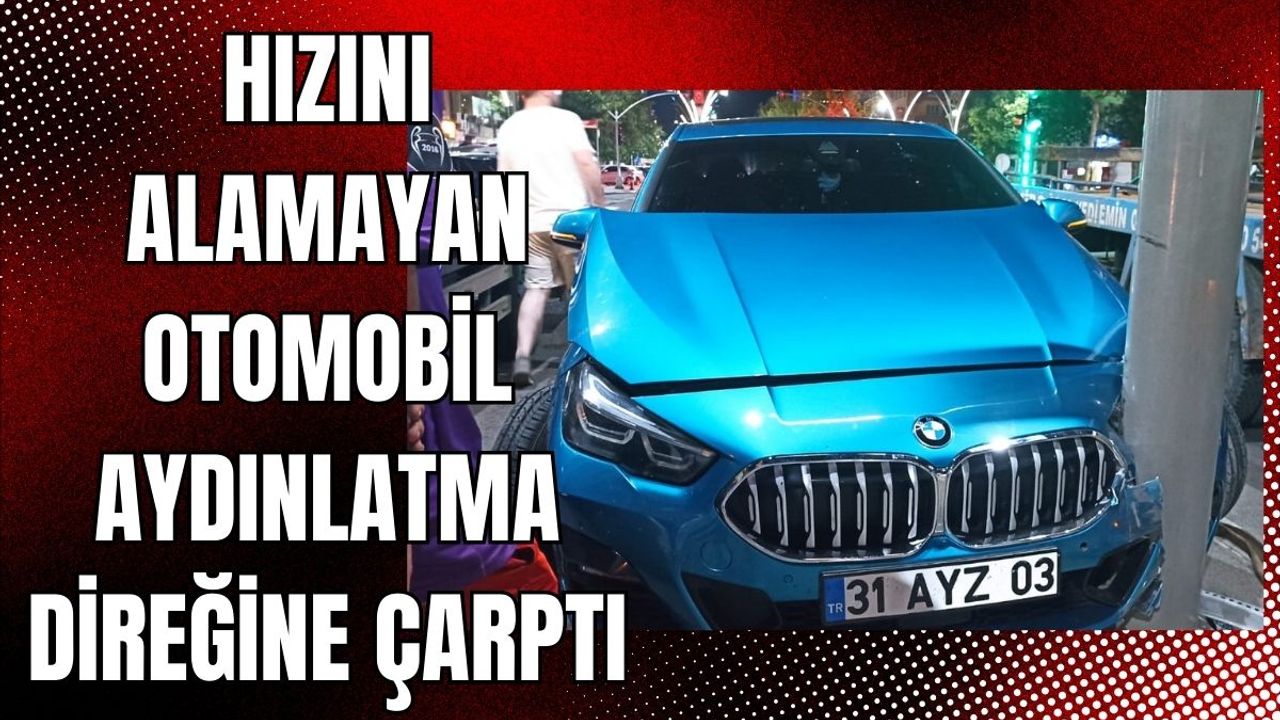 Trafik ışıklarının da bulunduğu kavşakta hızlı seyreden araç, kontrolü kaybederek servis yolu ile ana caddeyi birbirinden ayıran kaldırım taşlarının üzerine çıktıktan sonra elektrik direğine çarparak durabildi.