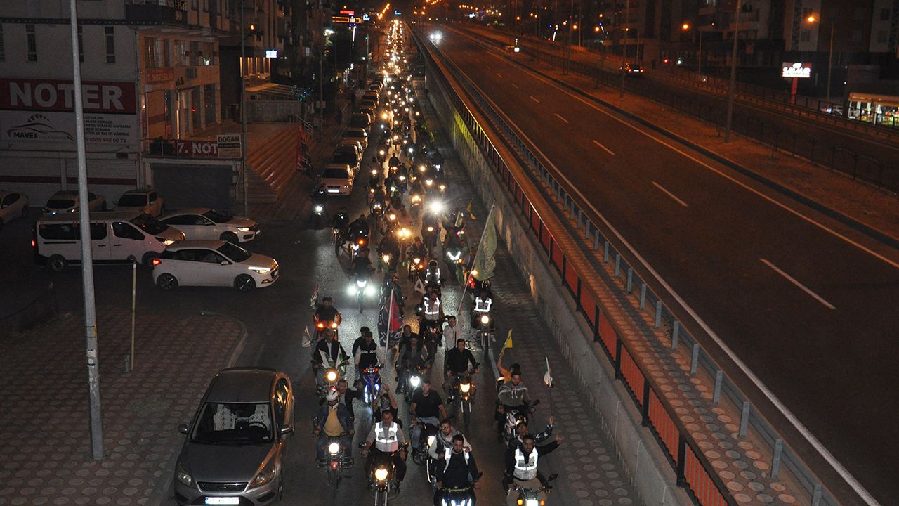 “Filistin'deki direnişe destek vermek, siyonist işgal rejimini lanetlemek ve Filistinli mücahitlerin başlattığı Aksa Tufanı harekâtında safımızı belli etmek üzere bu akşam düzenlediğimiz konvoya araç ve motorlarıyla katılarak destek veren tüm vatandaşlarımıza, sivil toplum kuruluşları ve siyasi parti temsilcilerine ve basın mensuplarına çok teşekkür ederiz. Allah-u Teâlâ Kudüs ve Mescid-i Aksa'nın özgürlüğüne, Filistin'de kahramanca mücadele eden Kassam Tugayları'nın zaferine vesile kılsın inşallah.