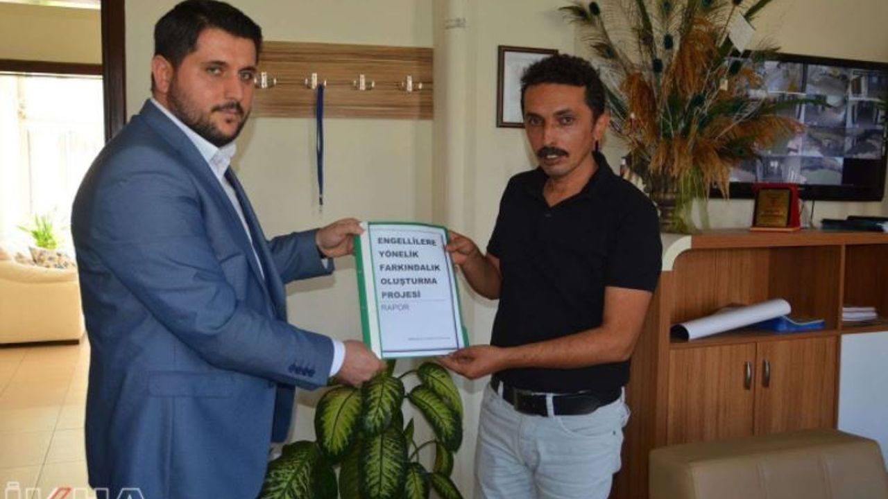 Kendisine teslim edilen 'Engellilere Yönelik Farkındalık Oluşturma Projesi Raporu'nu inceleyen Çakan, güzel ve ayırtılı hazırlanan rapor için Durmuş'a ve heyetine teşekkür etti.