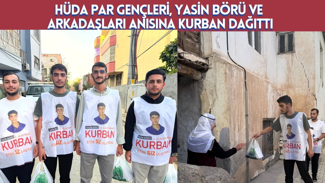 HÜDA PAR Batman İl Gençlik Kolları, 6-8 Ekim olaylarında vahşice katledilen Yasin Börü ve arkadaşlarının aziz hatırasını yaşatmak amacıyla örnek bir çalışmaya imza attı. Gençlik Kolları Başkanı Yusuf Serik öncülüğünde ihtiyaç sahibi ailelere kurban eti dağıtımı gerçekleştirildi.