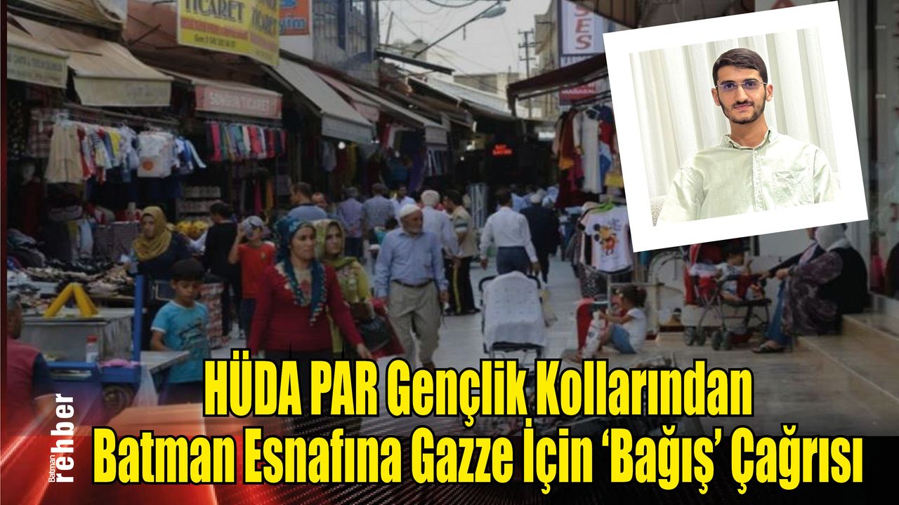 HÜDA PAR Batman Gençlik Kolları Başkanı Yusuf Serik, esnafları belirlenen bir günde elde edecekleri geliri Gazze'ye bağışlamaya davet etti. Serik, konuya ilişkin yaptığı açıklamada, Gazze'deki büyük acıya sessiz kalmamanın vicdani bir sorumluluk olduğunu vurguladı. Serik, bu çağrının, Filistinli kardeşlerin yanında olunduğunu gösteren somut bir adım olacağını belirtti.