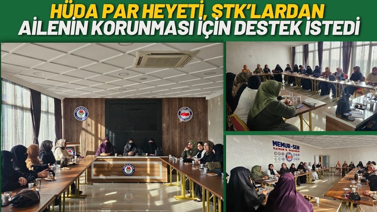 HÜDA PAR Kadın ve Aile Başkanı Aynur Sülün ile Batman İl Kadın Kolları Başkanı Şenay Coşkun, Batman’da faaliyet gösteren çeşitli sivil toplum kuruluşlarının kadın temsilcileriyle bir araya geldi. Memur-Sen Batman İl Başkanlığı toplantı salonunda gerçekleşen buluşmada, aile yapısının korunmasına yönelik kanun teklifleri ve toplumda giderek zorlaşan evlilik konuları gündeme geldi.