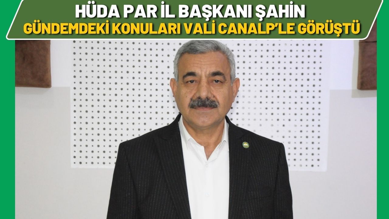 HÜDA PAR Batman İl Başkanı Davut Şahin, Batman Valisi ve Belediye Başkan Vekili Ekrem Canalp’i makamında ziyaret etti. Görüşmeye ilişkin sosyal medya hesabından açıklama yapan Şahin, halkın çeşitli konulardaki taleplerini Vali Canalp’e ilettiklerini belirtti.