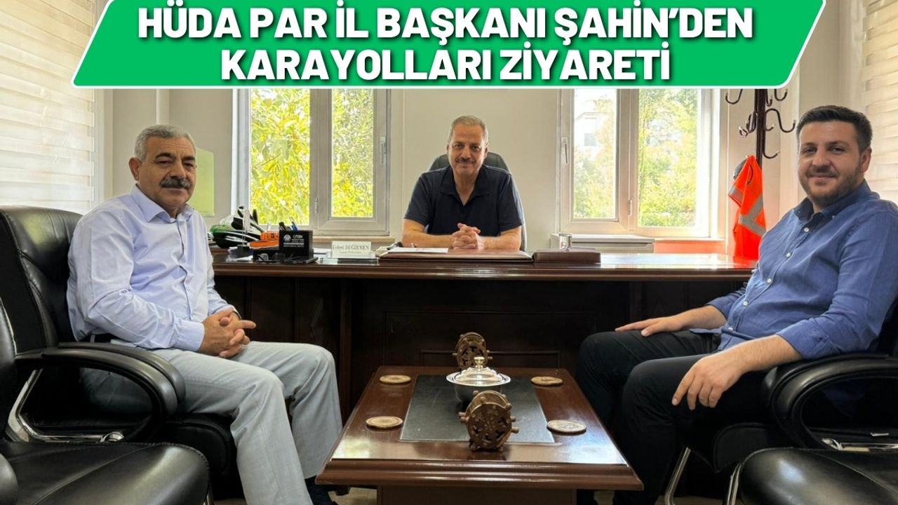 HÜDA PAR Batman İl Başkanı Davut Şahin, Merkez İlçe Sekreteri Uğur AKSOY ile birlikte Karayolları 97. Şube şefliğini ziyaret ederek Karayolları Batman Şube Şefi Fehmi Değirmen’le görüştü.