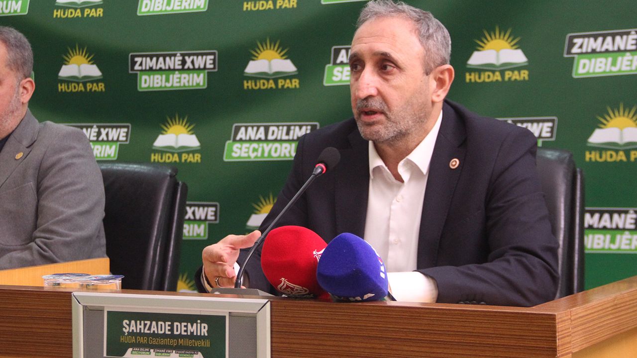 HÜDA PAR olarak, insan onurunu ve İslami adaleti esas alan bir çizgide; her türlü inkar ve asimilasyona karşı olduklarını aktaran Sevinik, 'Eğitimde anadil, adaletin mihenk ölçüsüdür. Bizim derdimiz çatışma ve tartışma değil, inşa etmektir. Mücadelemiz kavga değil, hakların teslim edilmesidir. Yolumuz yapıcı, olumlu ve doğru bir yoldur. Bugün anadilde eğitim haftada iki saatlik seçmeli ders statüsüne indirgenmişse, bu büyük bir eksiklik ve ciddi bir sorun olmakla birlikte şunu da açıkça söylüyoruz: Bu imkanı küçümsemek yerine, elimizden geldiğince istifade etmeliyiz, değerlendirmeliyiz. Eğer biz veliler olarak sahip çıkarsak, eğer çocuklarımızı teşvik edersek, eğer toplum olarak bu meseleye bilinçli yaklaşırsak işte o zaman hakikat kendini gösterecektir. Biz inanıyoruz ki hak ortaya çıktığında çözüm de beraberinde gelecektir. Bu vesileyle buradan tüm anne babalara ve velilere açık bir çağrıda bulunuyoruz: Çocuklarınız için seçmeli derslerde mutlaka hem anadil derslerini Kürtçeyi, Kur'an-ı Kerim dersini, peygamberin hayatı olan Siyer derslerini tercih edin. Bu sadece bireysel bir tercih değildir; bu, toplumsal bir sorumluluktur. Bu, ahlaki bir duruştur. Bu, geleceğimize sahip çıkmaktır. Anadil, varoluşun teminatı ve sesidir. Ana dil, insani değerlere sahip çıkmanın göstergesidir. Biz inanıyoruz ki adalet tesis edilirse kardeşlik güçlenir. Haklar teslim edilirse birlik büyür. Dil özgür olursa millet nefes alır. Biz HÜDA PAR olarak, insan onurunu ve İslami adaleti esas alan bir çizgide; her türlü inkar ve asimilasyona karşı duruyoruz. Özellikle yüksek bir sesle şunu ifade etmek isterim ki: HÜDA PAR'ın hedefi, adalet temelinde; merkezinde insan ve insani değerlerin yer aldığı, tüm etnik kimliklerin ve inançların hukukla tanındığı; dinin, canın, malın, aklın ve neslin güvence altına alındığı; herkes için eksiksiz bir hukuk ve adalet düzeninin tesis edildiği bir ülke inşa etmektir. Rabbimizden dileğimiz şudur: Bizi hakkı ayakta tutanlardan, zulme karşı duranlardan ve adaletin şahidi olanlardan eylesin.' ifadelerine yer verdi.