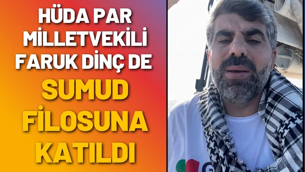 İsrail’in yıllardır abluka altında tuttuğu Gazze için başlatılan Sumud filosu hareketine HÜDA PAR Milletvekili Faruk Dinç de katıldı. Dinç, yaptığı açıklamada “Kendimizi ve kardeşlerimizi kurtarmak için Gazze’ye gidiyoruz” sözleriyle Gazze’ye yardım için yola çıktığını belirtti.