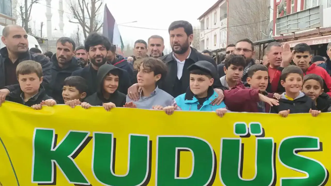 Muş'un Sungur ilçe meydanında toplanan kalabalık Gazze'ye ve Filistin direnişine destek sloganlarını attı.