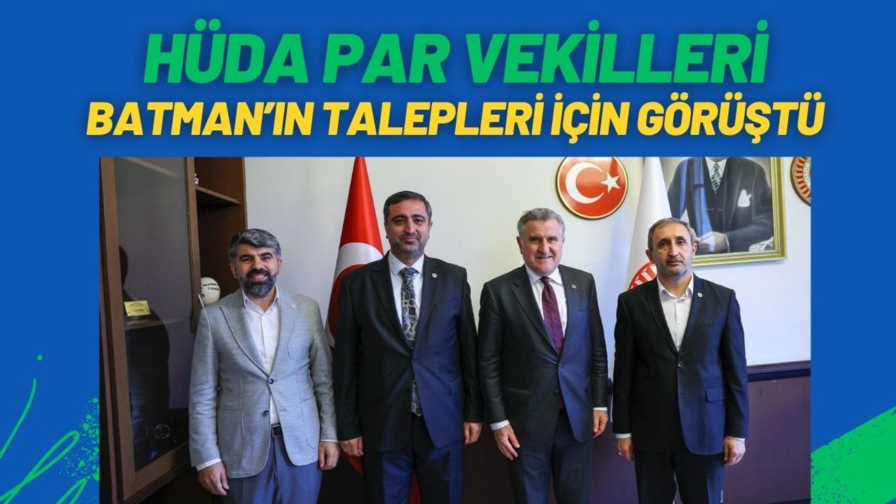 HÜDA PAR’lı üç vekil Batmanlıların taleplerini iletmek için birlikte Gençlik ve Spor Bakanı Osman Aşkın Bak ile görüşme gerçekleştirdi. HÜDA PAR’lı vekiller Serkan Ramanlı, Şehzade Demir ve Faruk Dinç Batmanlıların talepleri için bakanla görüştüler.