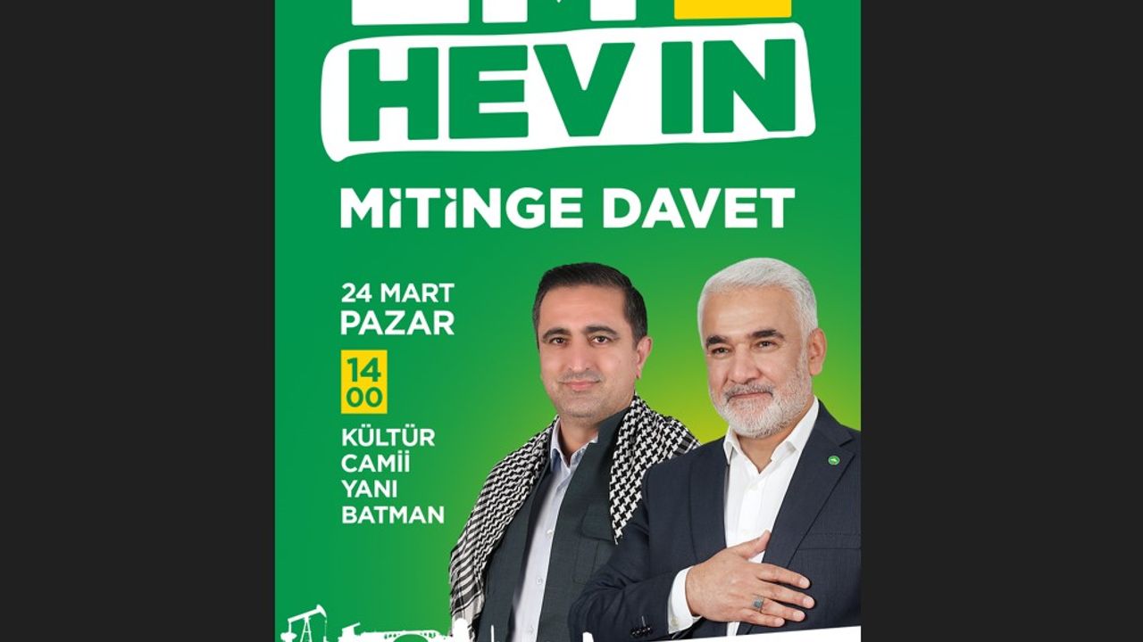 HÜDA PAR Batman İl Başkanı Davut Şahin, pazar günü yapılacak ‘Büyük Seçim Mitingi’ne HÜDA PAR Genel Başkanı Zekeriya Yapıcıoğlu’nun katılacağını belirterek, tüm Batman halkını mitinge katılarak adaylarına destek olmaya davet etti.