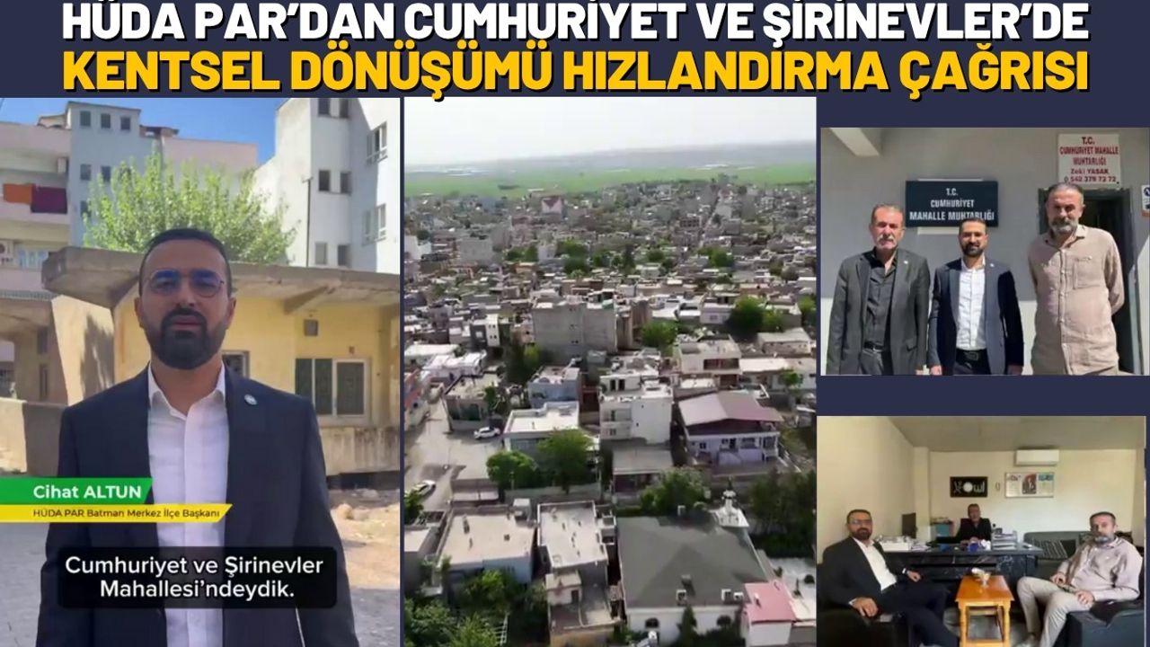 HÜDA PAR Batman Merkez İlçe Başkanı Cihad Altun, Cumhuriyet ve Şirinevler mahallelerinde yürütülen çalışmalarla ilgili önemli açıklamalarda bulundu. Altun, kentsel dönüşümün artık bir “lütuftan çıkıp aciliyet” haline geldiğini vurguladı.